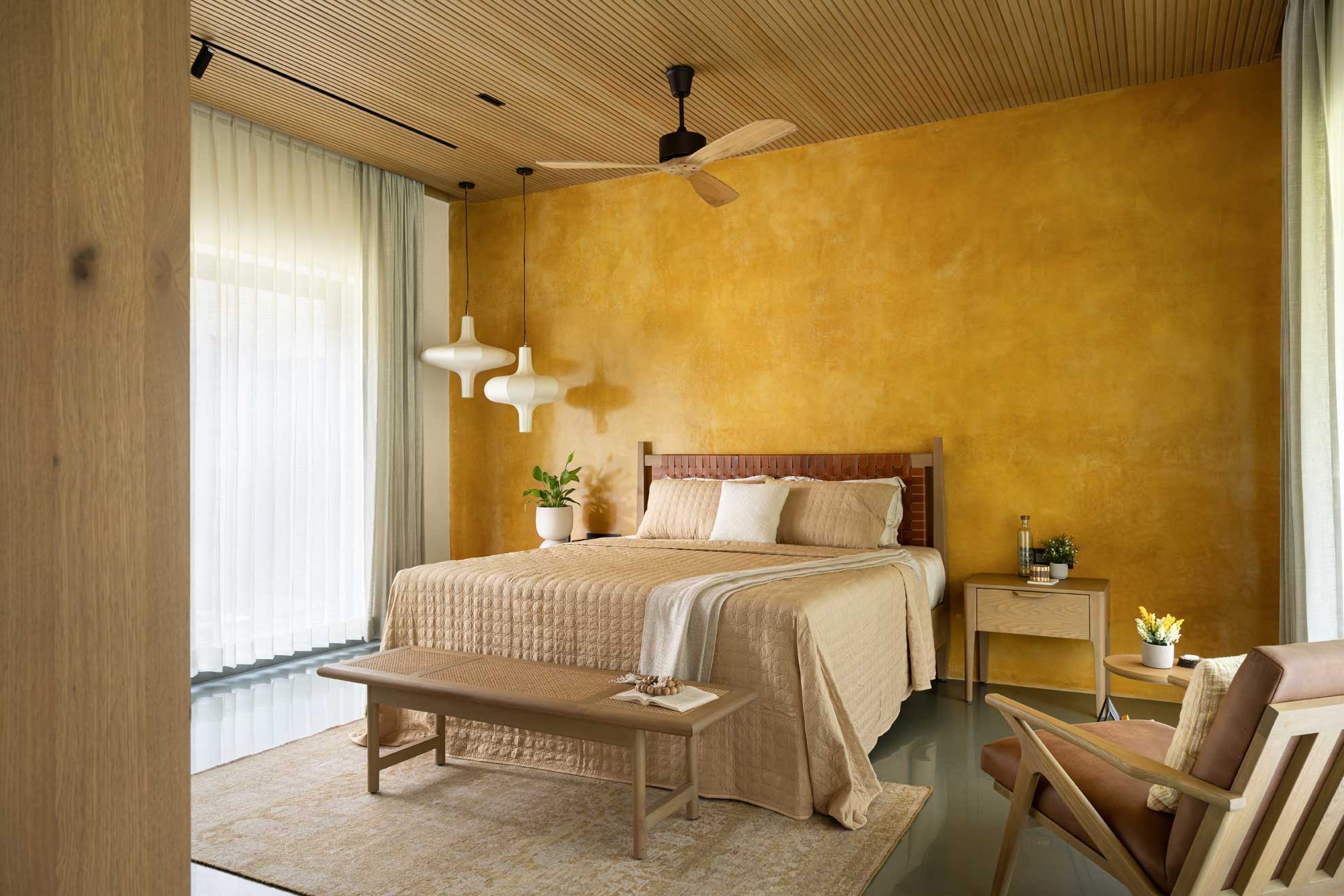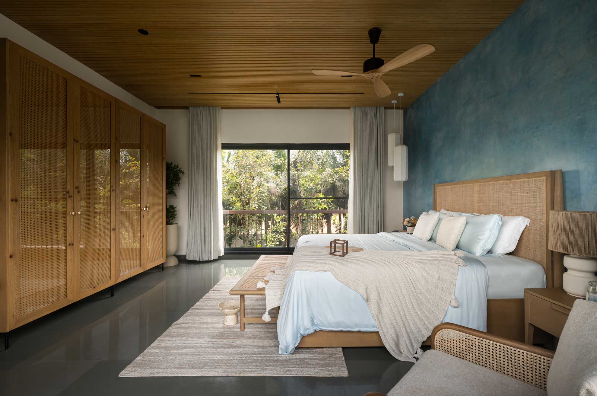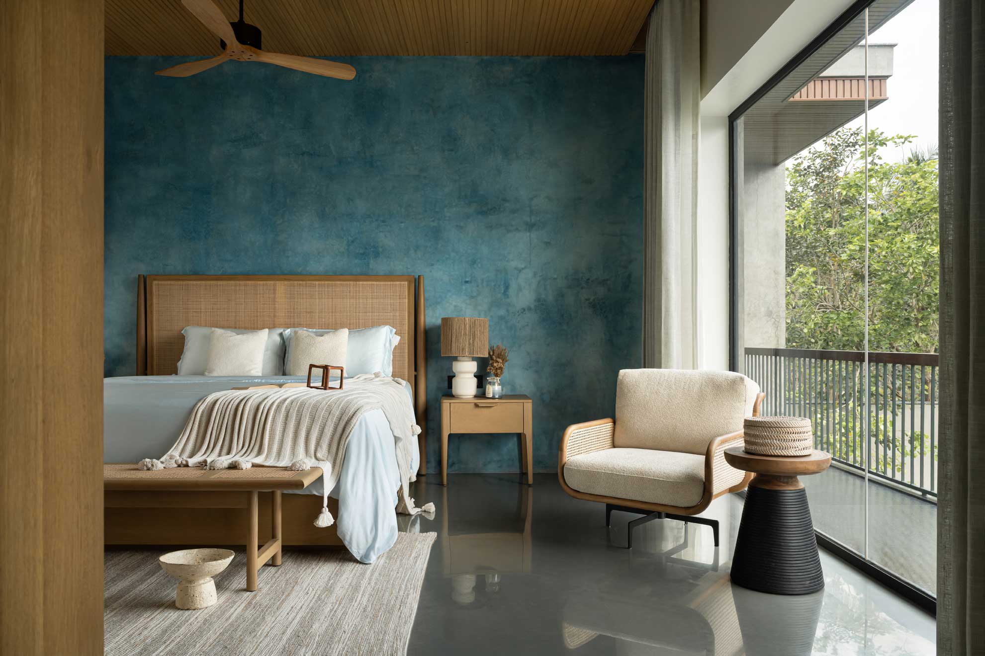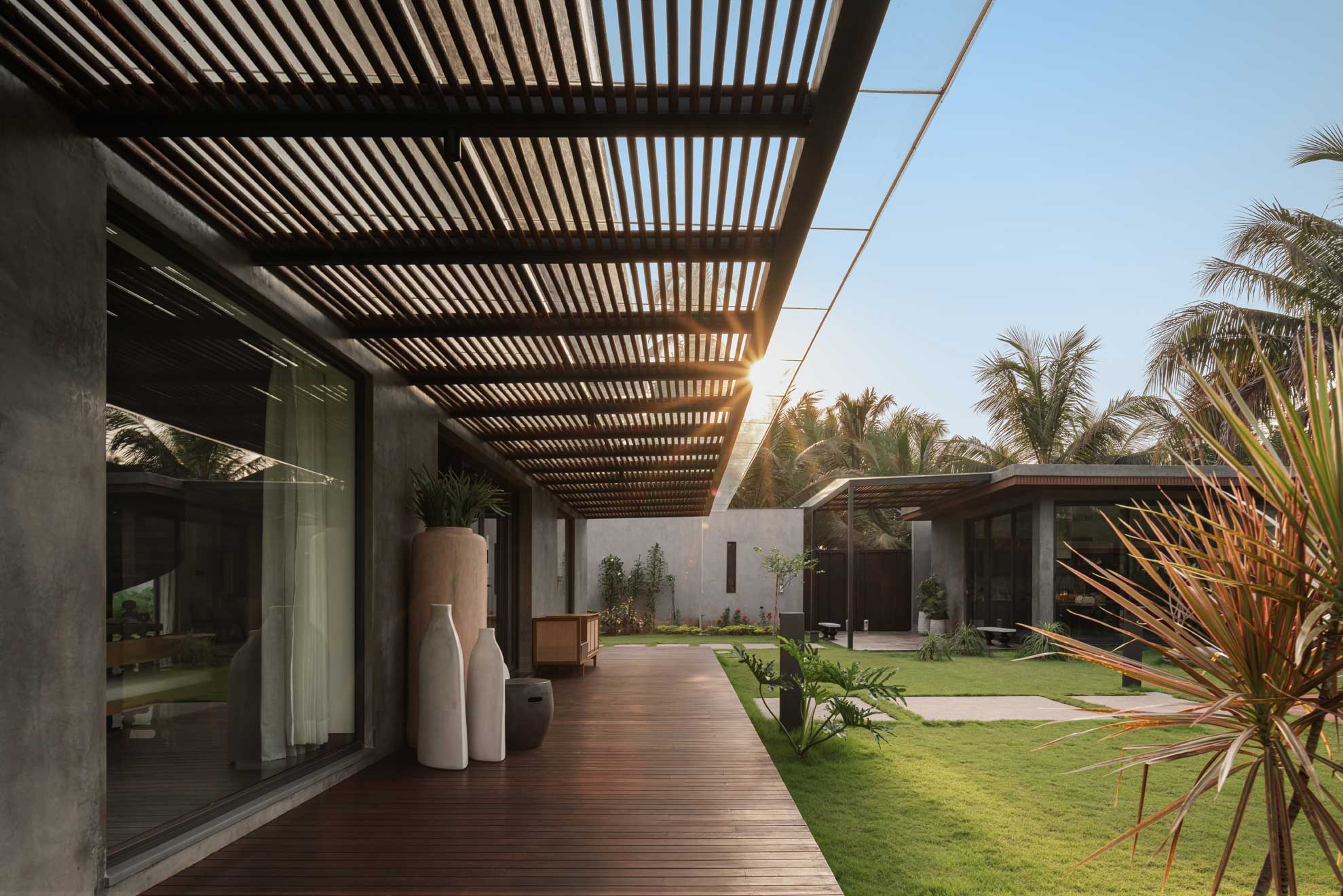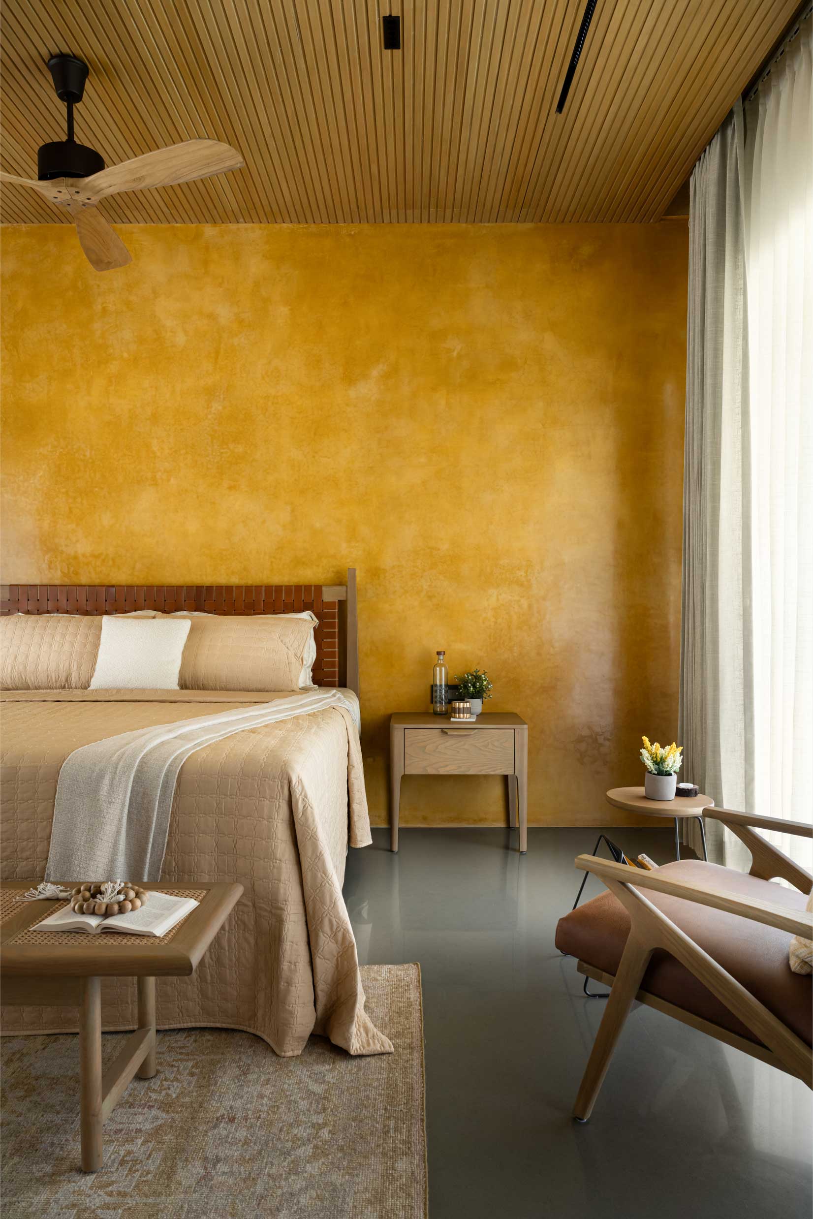 The home is thoughtfully carved out of a 30,000-square-foot parcel within the larger farm, carefully chosen to maximize privacy, natural shading, and connection with the existing topography. Of this, just 8,000 square feet is built-up, reinforcing the idea that architecture here is meant to complement, not compete.